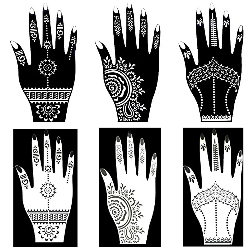 *Pasting position: Hand, Finger, 1 Set = 11 Left Hand + 9 Right Hand Henna Stencils.