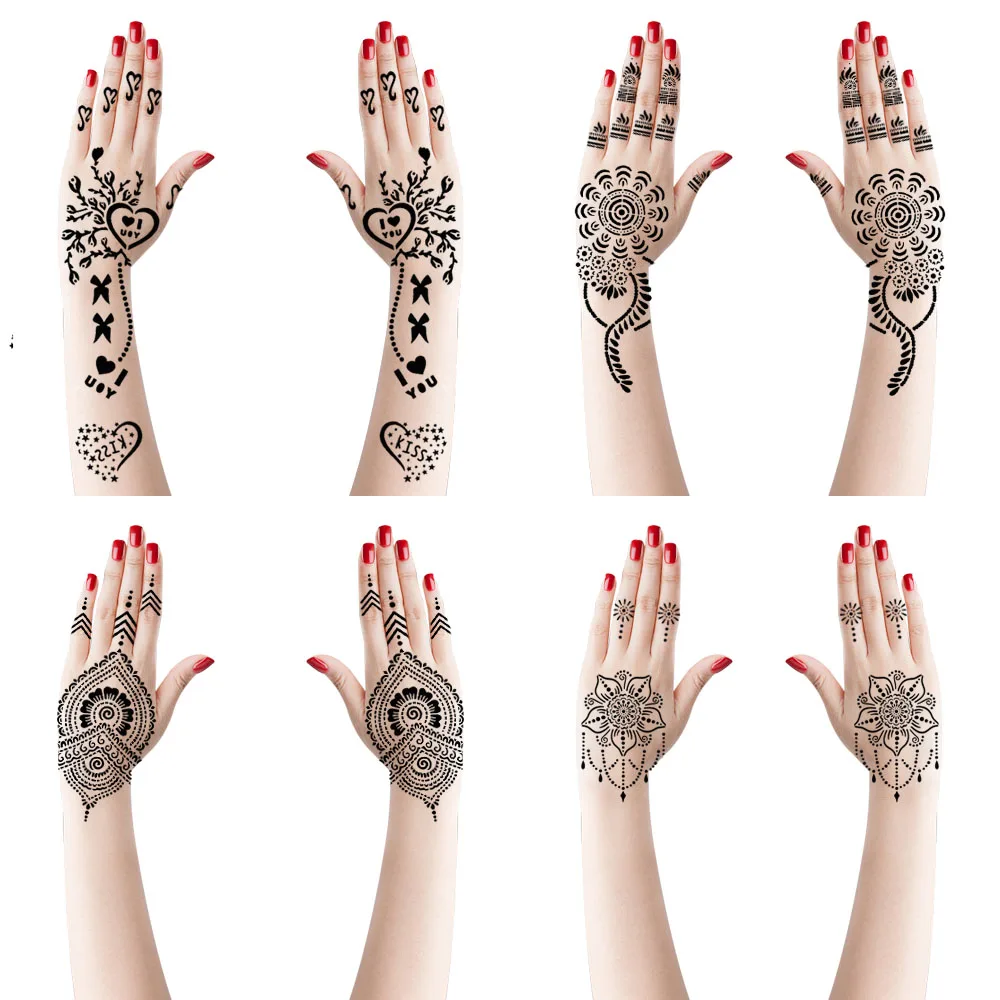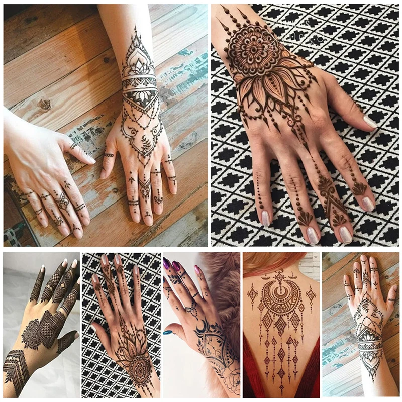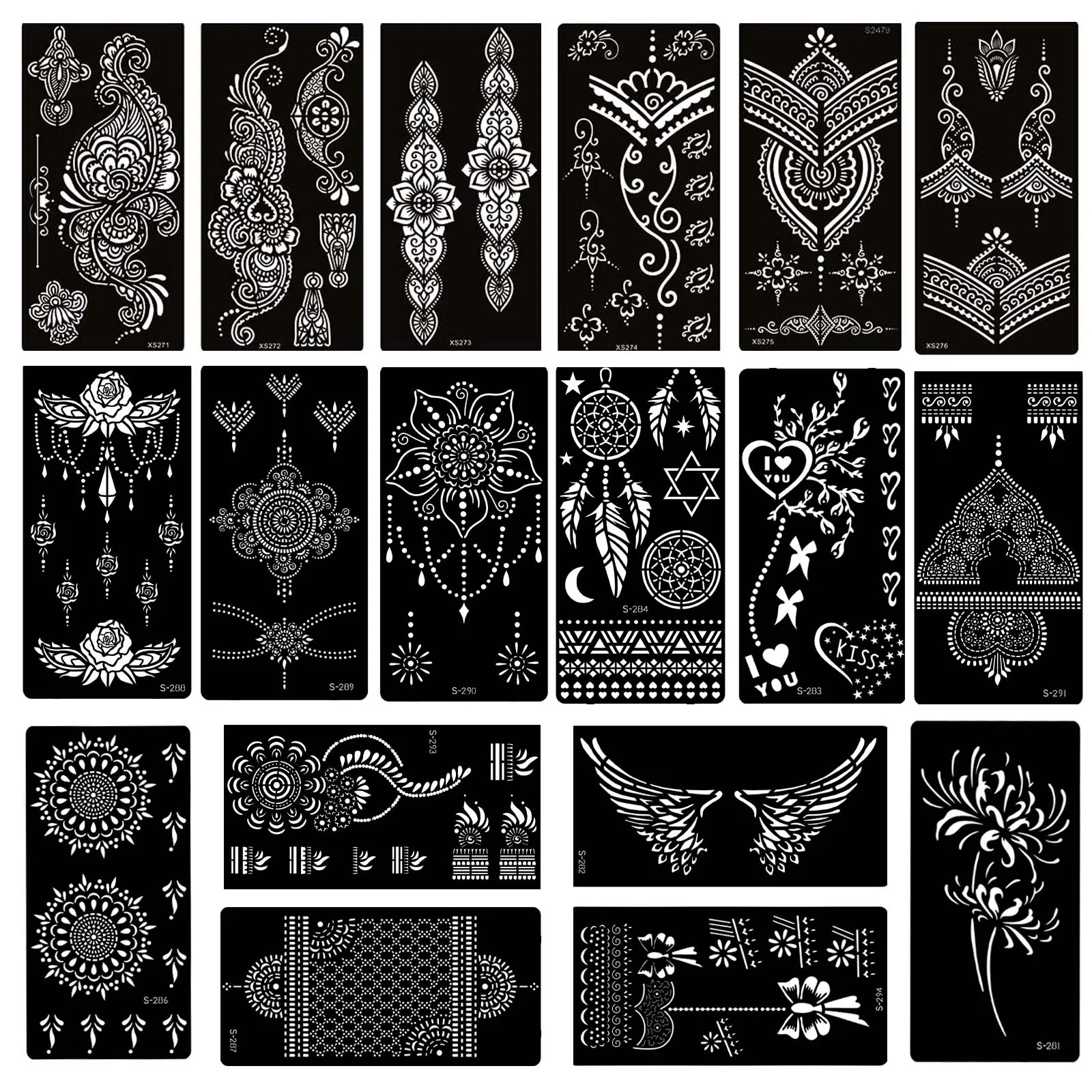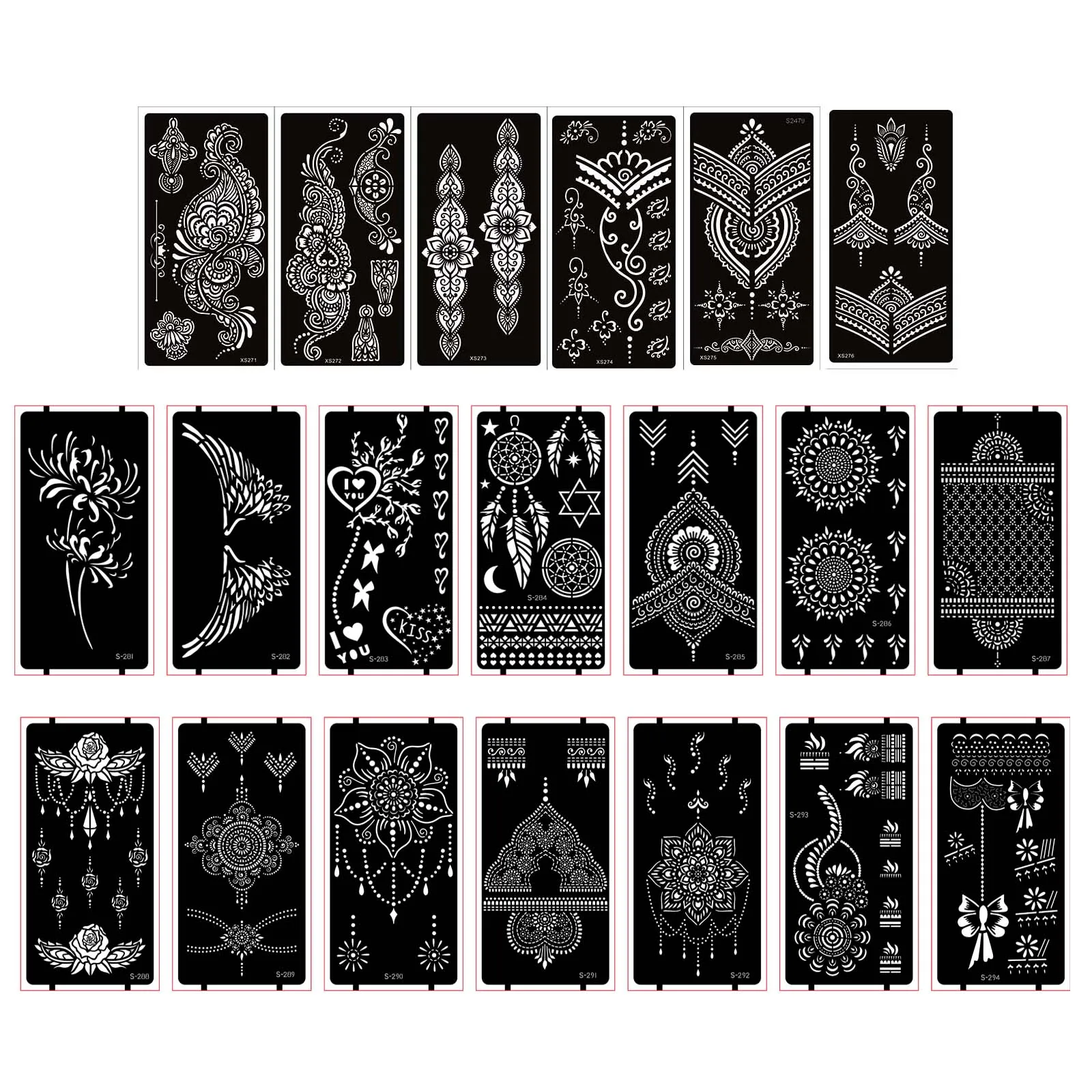20 Pcs Henna Tattoo Stencil Kit For WomenTemporary Body Art Indian Mehndi Self Adhesive Templates Tattoo For Hand Painting